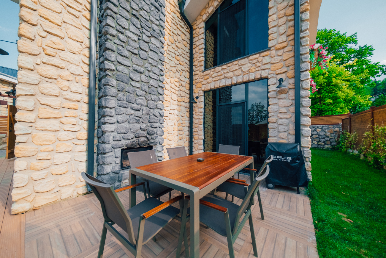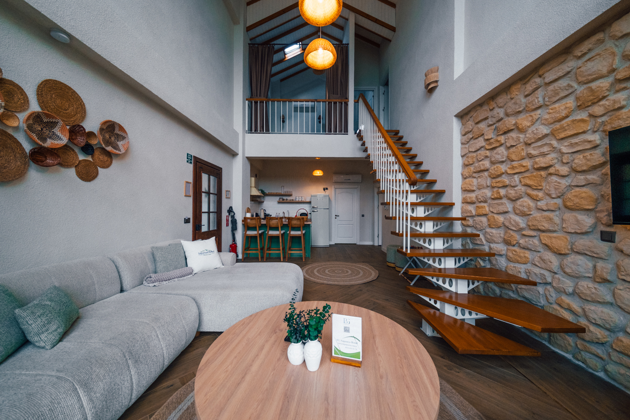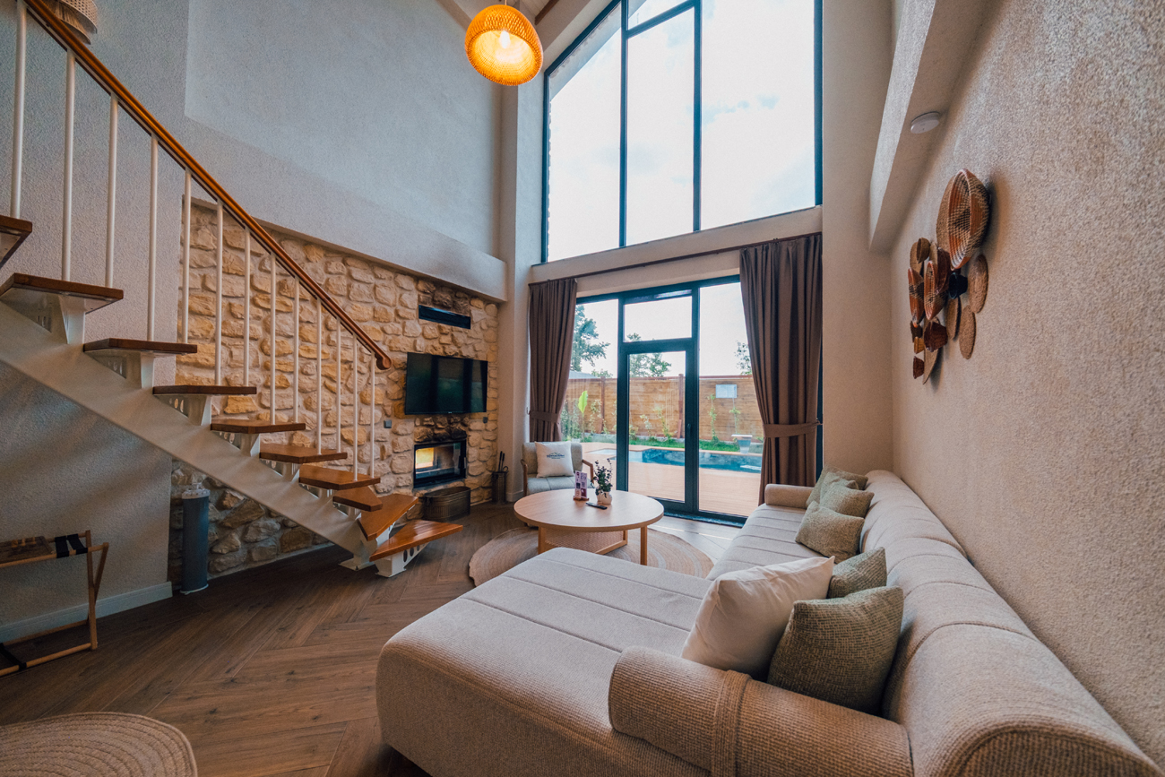 Salon: Açılamayan L koltuk, şömine, bebek beşiği, mama sandalyesi, yemek masası, wifi, TV(netflix), wc&banyo, hamam & Sauna bulunmaktadır.