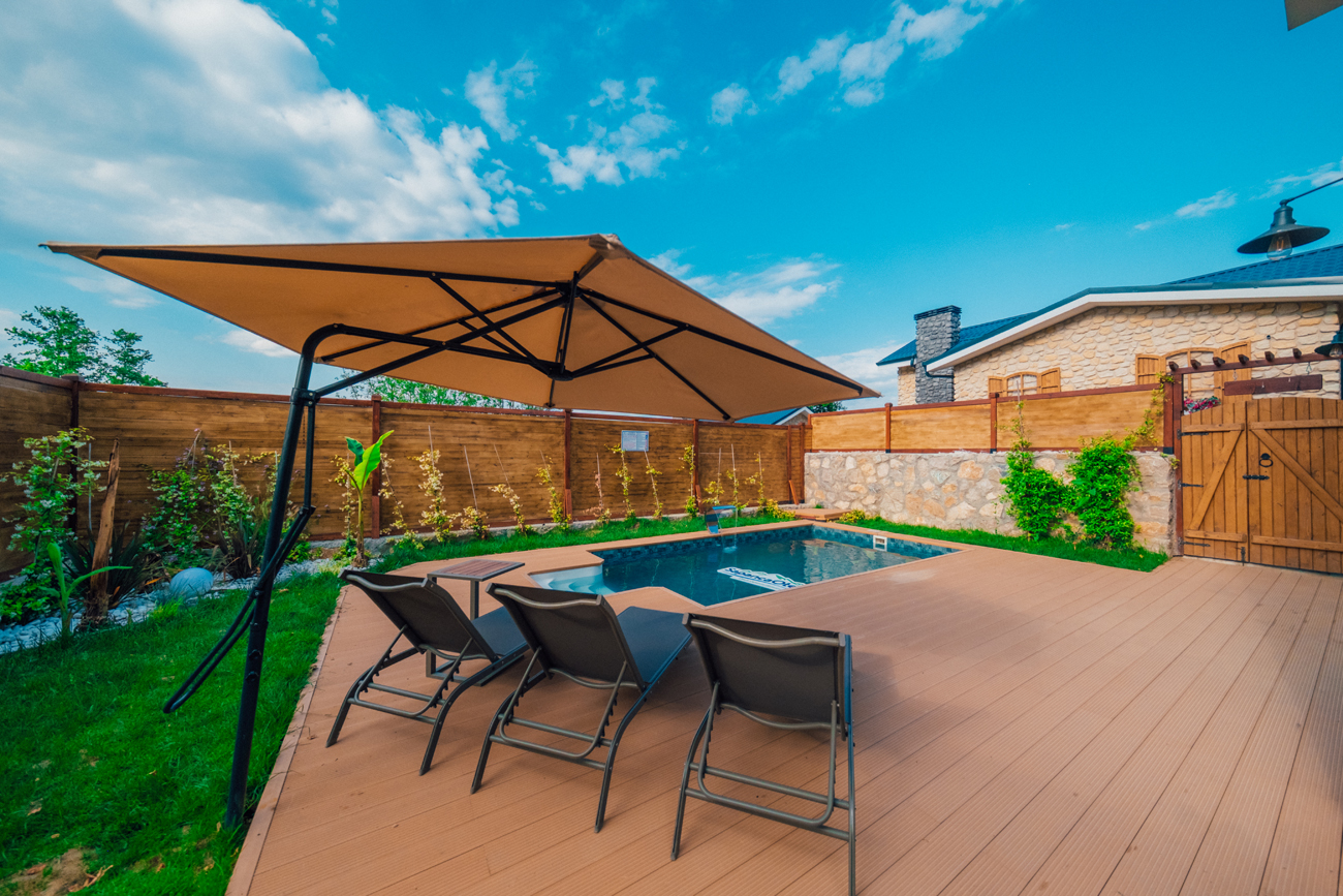 Bahçe: Özel Isıtmalı havuz(3x5 m 1.40 m derinlik), barbekü, şezlong, şemsiye, bahçe mobilyaları bulunmaktadır.