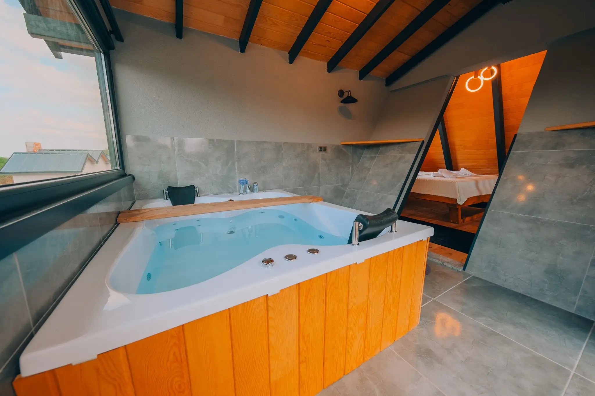 1. Yatak odası: Asma kat Çift kişilik yatak, jakuzi ( ayrı odada bulunur.)