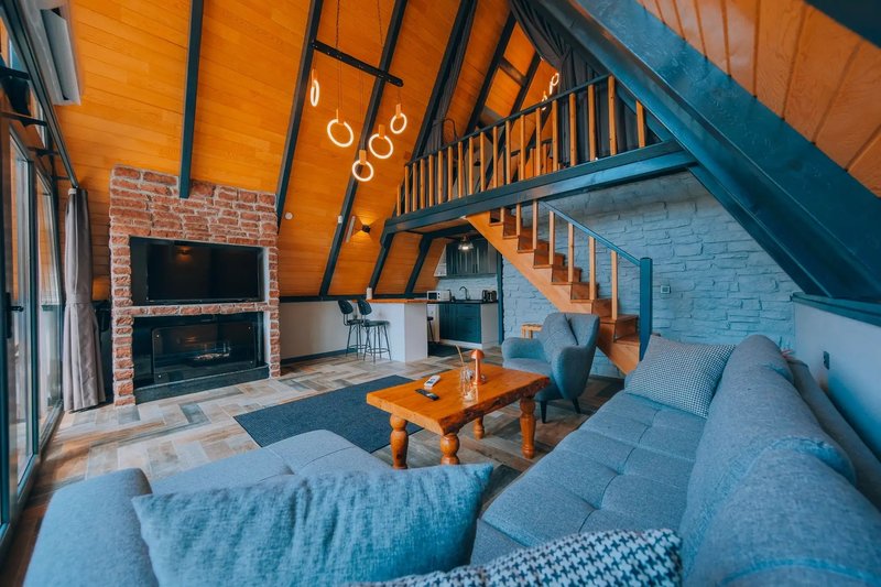 Salon: Açılabilir L koltuk, orta sehpa, tv(netflix desteklemektedir.), yemek masası, klima, doğalgaz şöminesi, wc banyo bulunmaktadır.