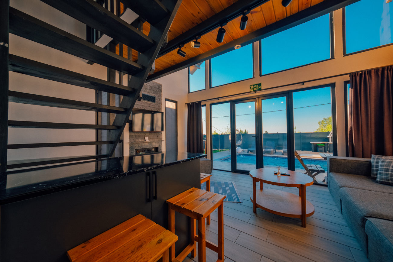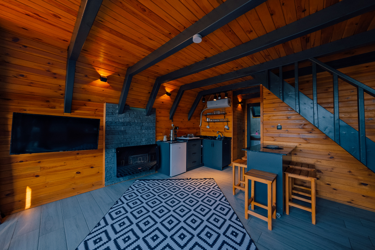 Salon: Açılabilir L koltuk, tv(netflix desteklemektedir.), yemek masası, klima, şömine, wc banyo bulunmaktadır.