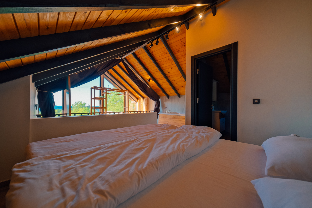 1. Yatak odası: Asma kat Çift kişilik yatak, jakuzi