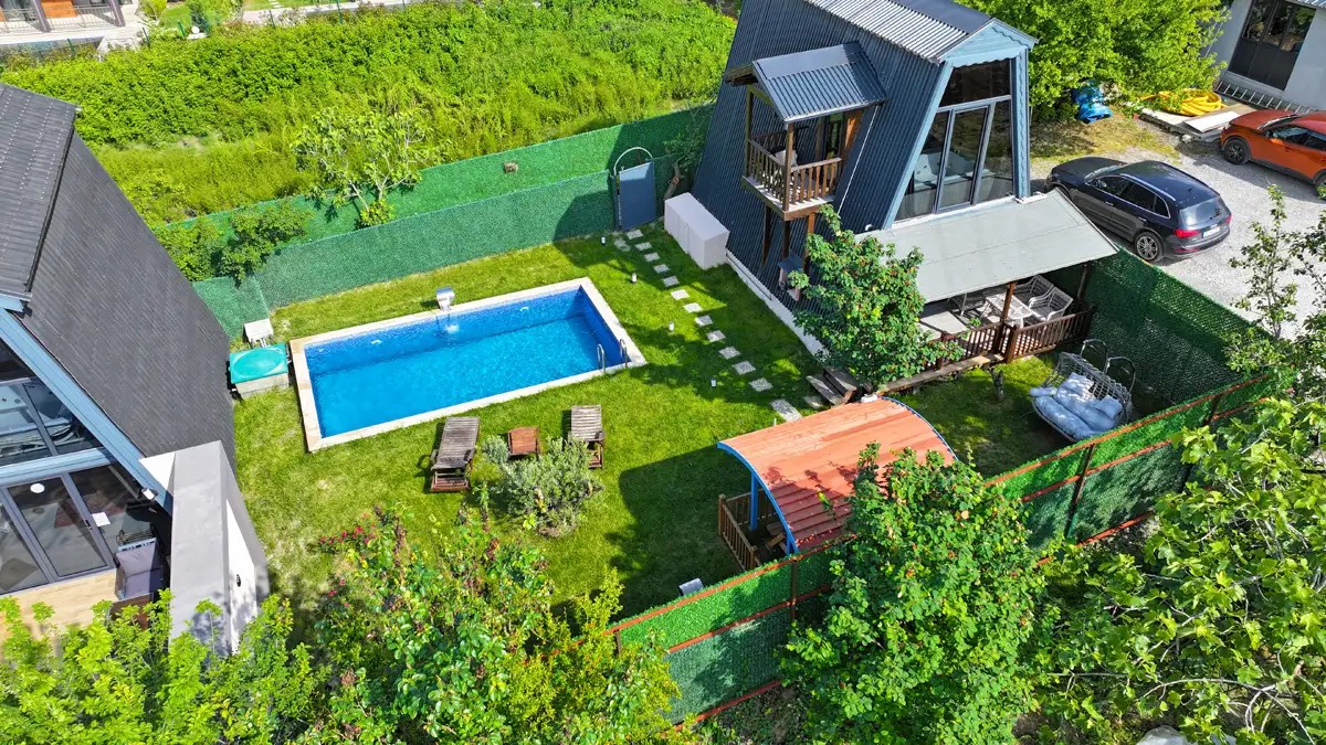 Bahçe : Barbekü, özel havuz ve bahçe mobilyaları bulunmaktadır.
