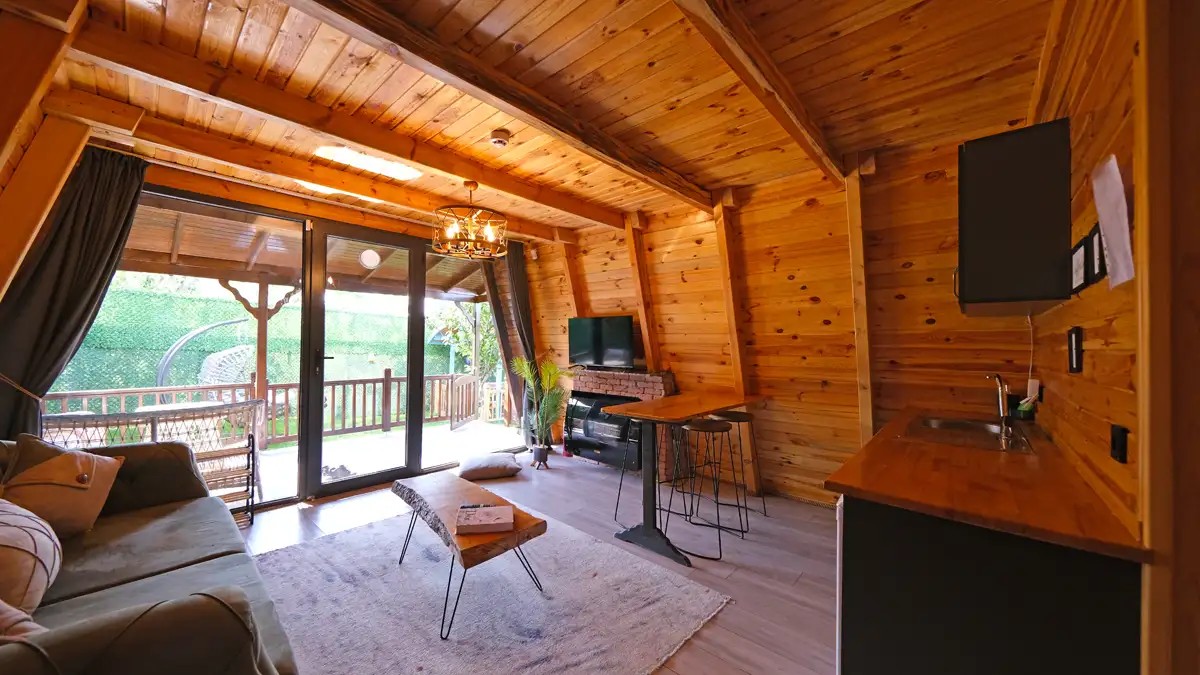 Salon : Rahat ve şık açılır bir koltuk , doğalgazlı şömine , TV ,klima ve Wc banyo bulunmaktadır.