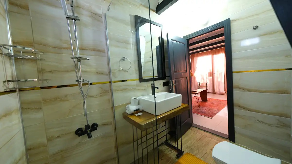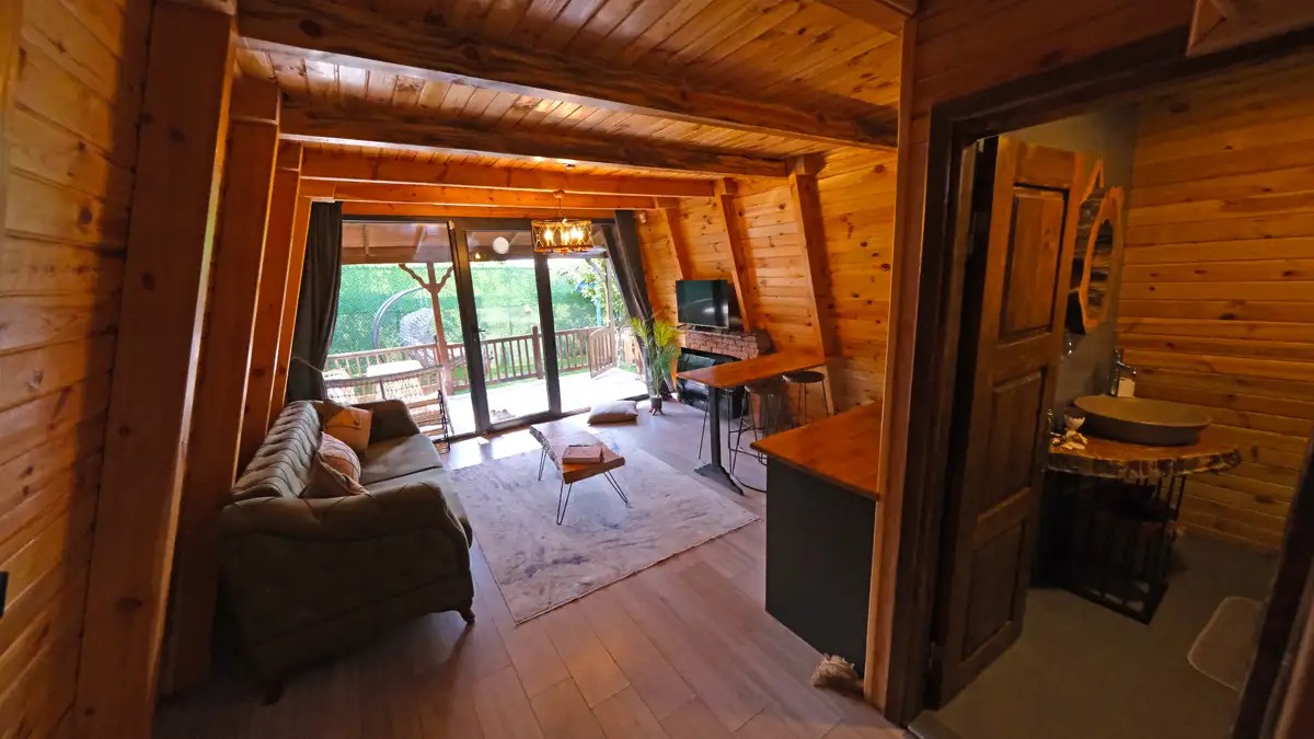 Salon : Jakuzi odası bulunur, 1.5 ebatında büyüyen açılır kapanır koltuk bulunur. TV ,klima, doğalgazlı şömine ve Wc banyo bulunmaktadır.