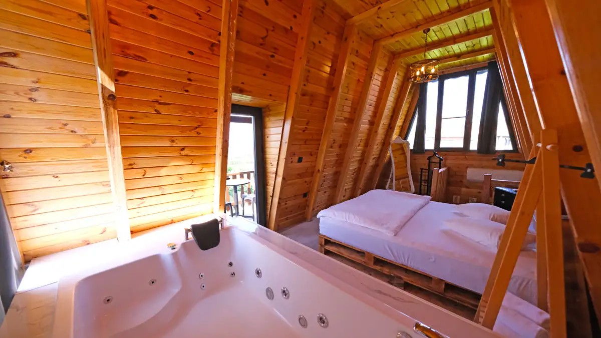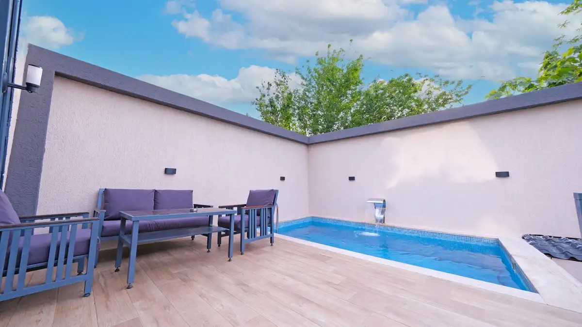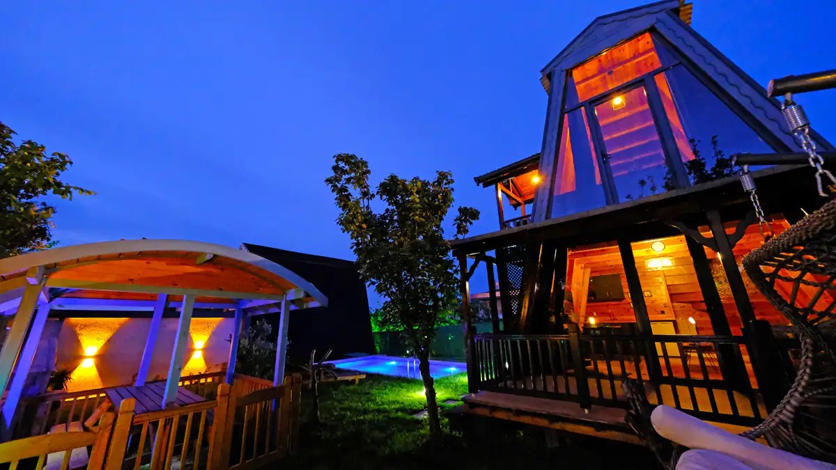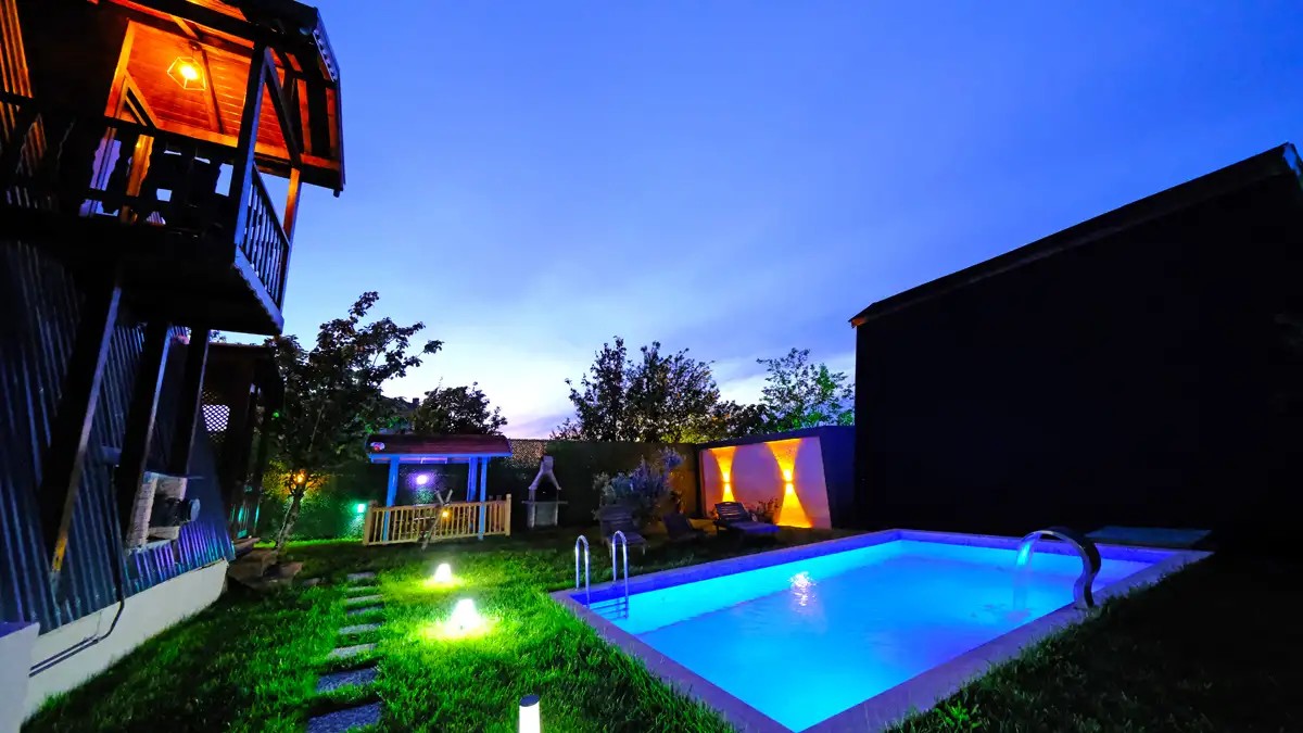 1 adet bulunmaktadır. Özel havuzlu ve jakuzilidir. Max. 3 yetişkin konaklayabilmektedir.