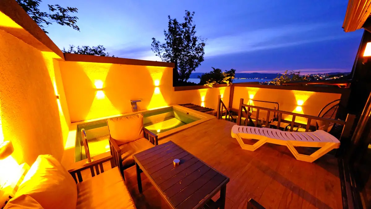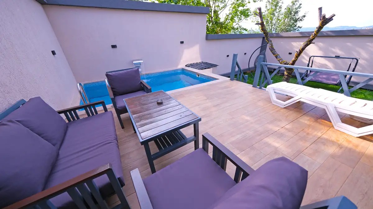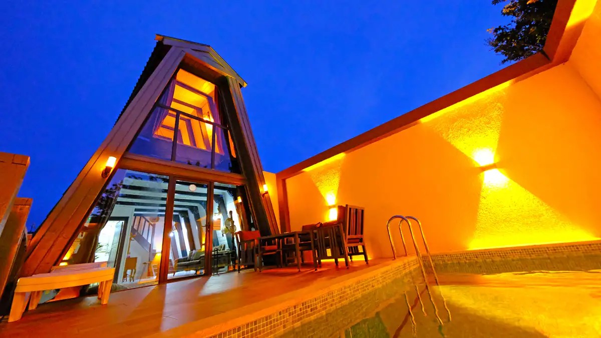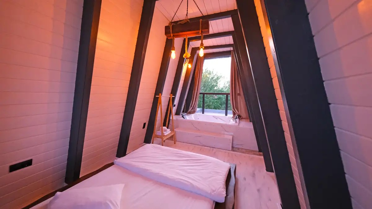 1 adet bulunmaktadır. Özel havuzlu ve jakuzilidir. Max. 3 yetişkin konaklayabilmektedir.