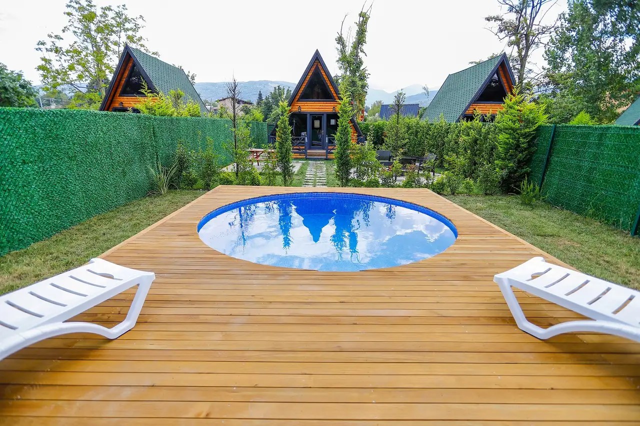 Dubleks Bungalov Havuzlu: 3 adet bulunmaktadır. Max. 4 kişi konaklayabilmektedir.