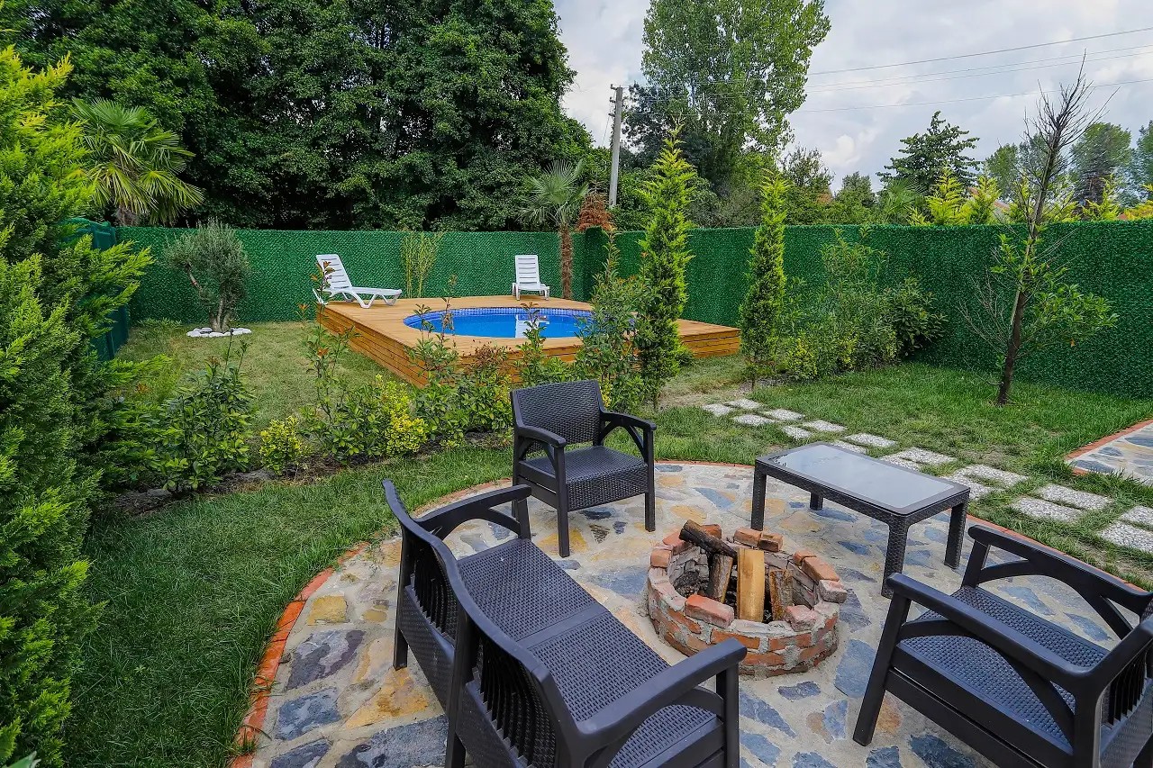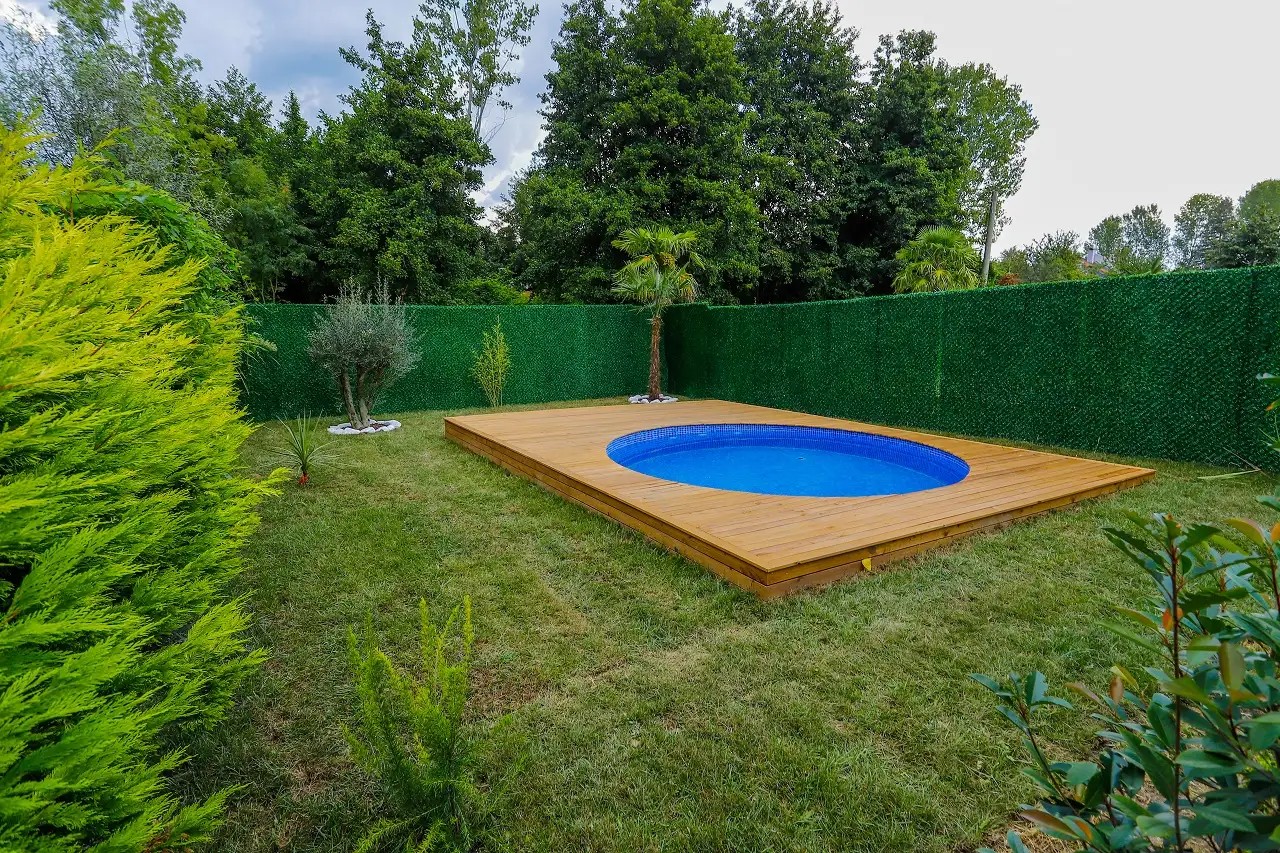 Bahçe : Özel Isıtmalı Havuz( 4 m çap, 1,50 m derinlik) , Barbekü, yemek masası teraslarda salıncak bulunmaktadır.