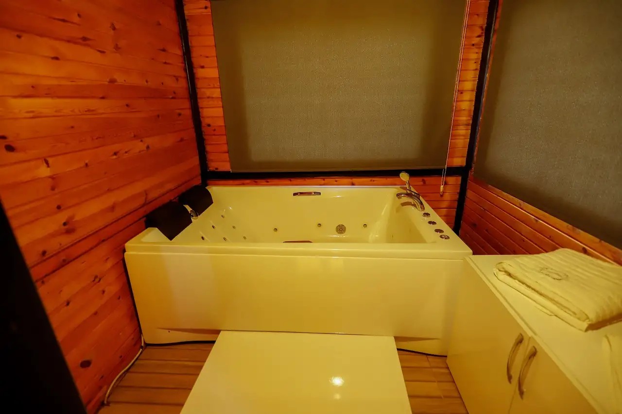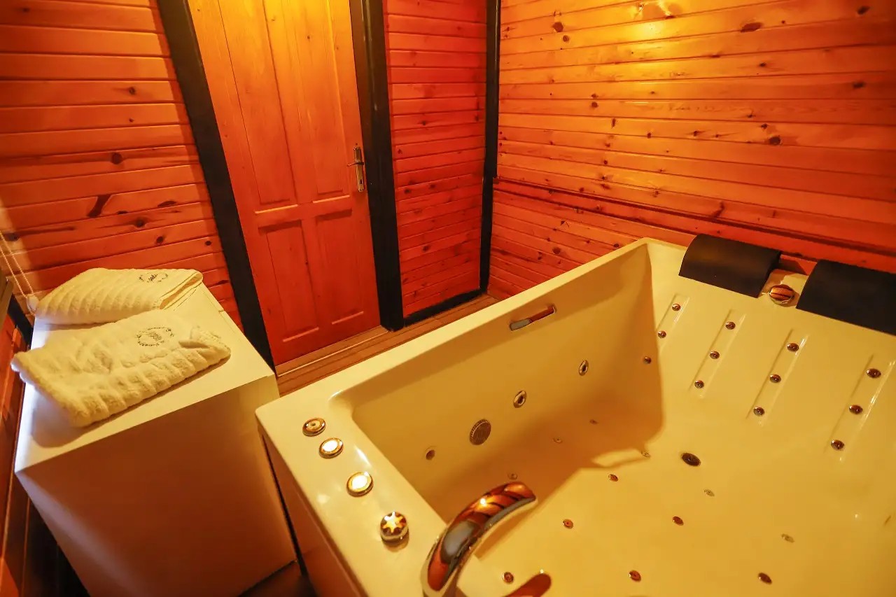 Jakuzili Dubleks Bungalov : 1 adet bulunmaktadır. Ayrı odada Jakuzi bulunmaktadır. Teras bulunmaktadır. Max. 3 kişi konaklayabilmektedir.