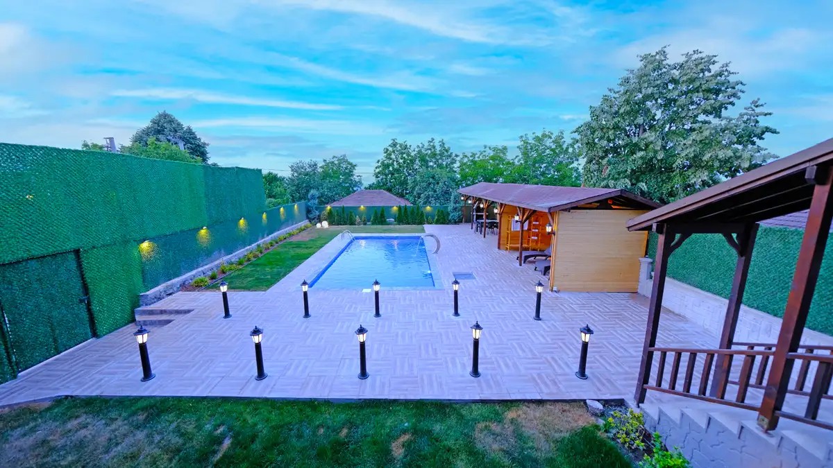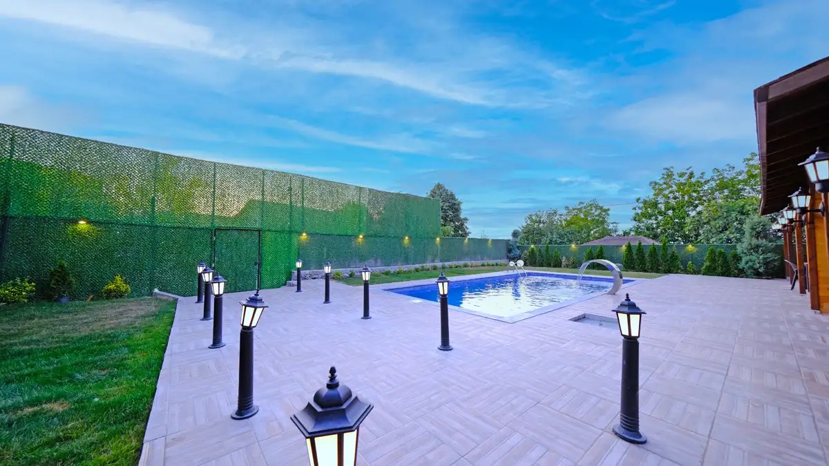 Bahçe: Isıtmalı Özel Havuz (4m x 8 m, derinlik 1,50) barbekü, bahçe mobilyası, ateş kazanı bulunmaktadır.