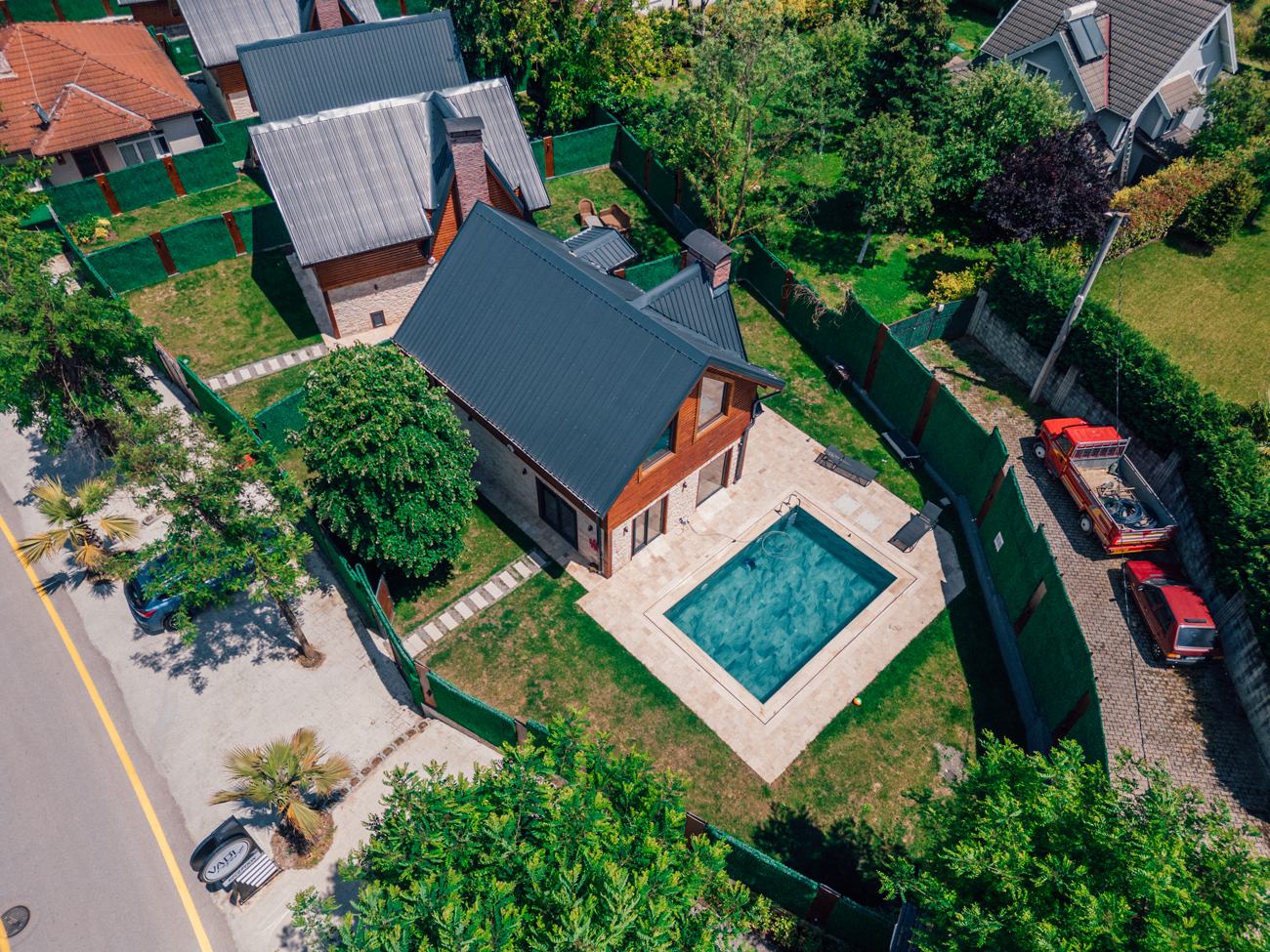 Bahçe: Özel ısıtmalı havuz (4m x 6m, derinlik 1,50m), şezlong, şemsiye, ateş kazanı, barbekü, bahçe mobilyası, salıncak bulunmaktadır.
