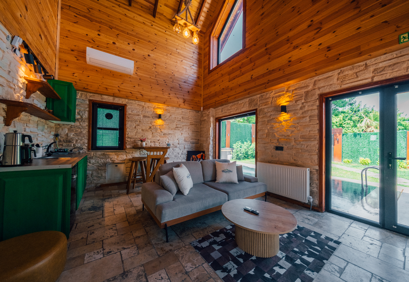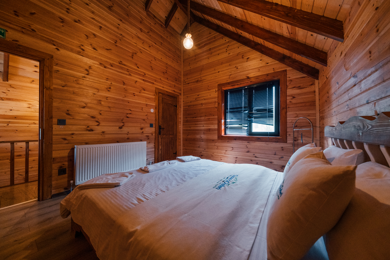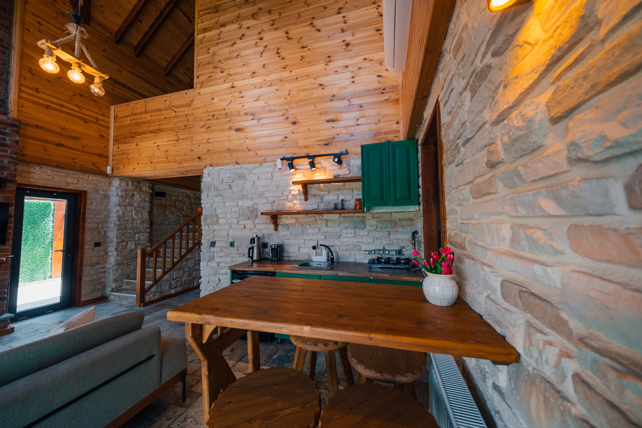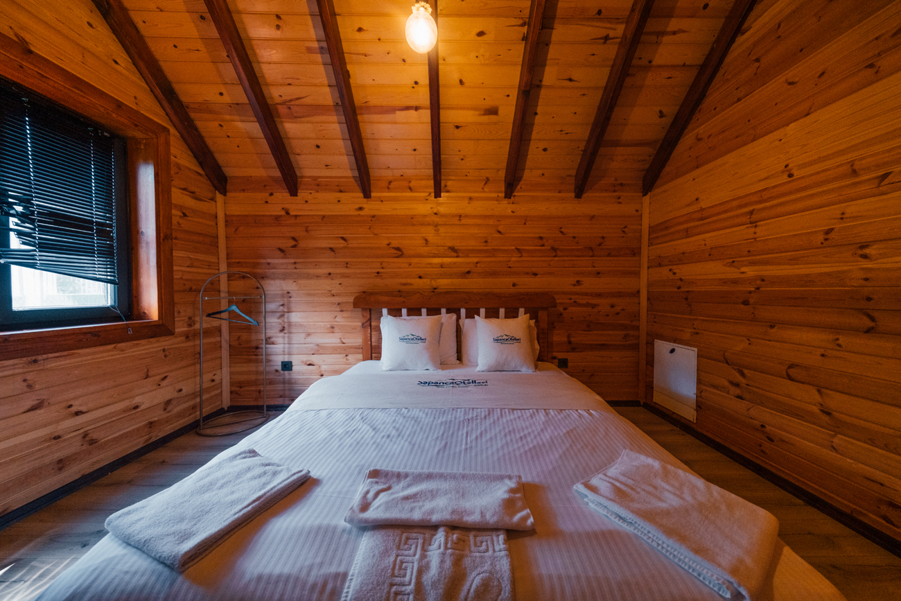 Salon: Açılır kanepe, şömine, yemek masası, TV, klima, Wifi, Wc & Banyo bulunmaktadır.