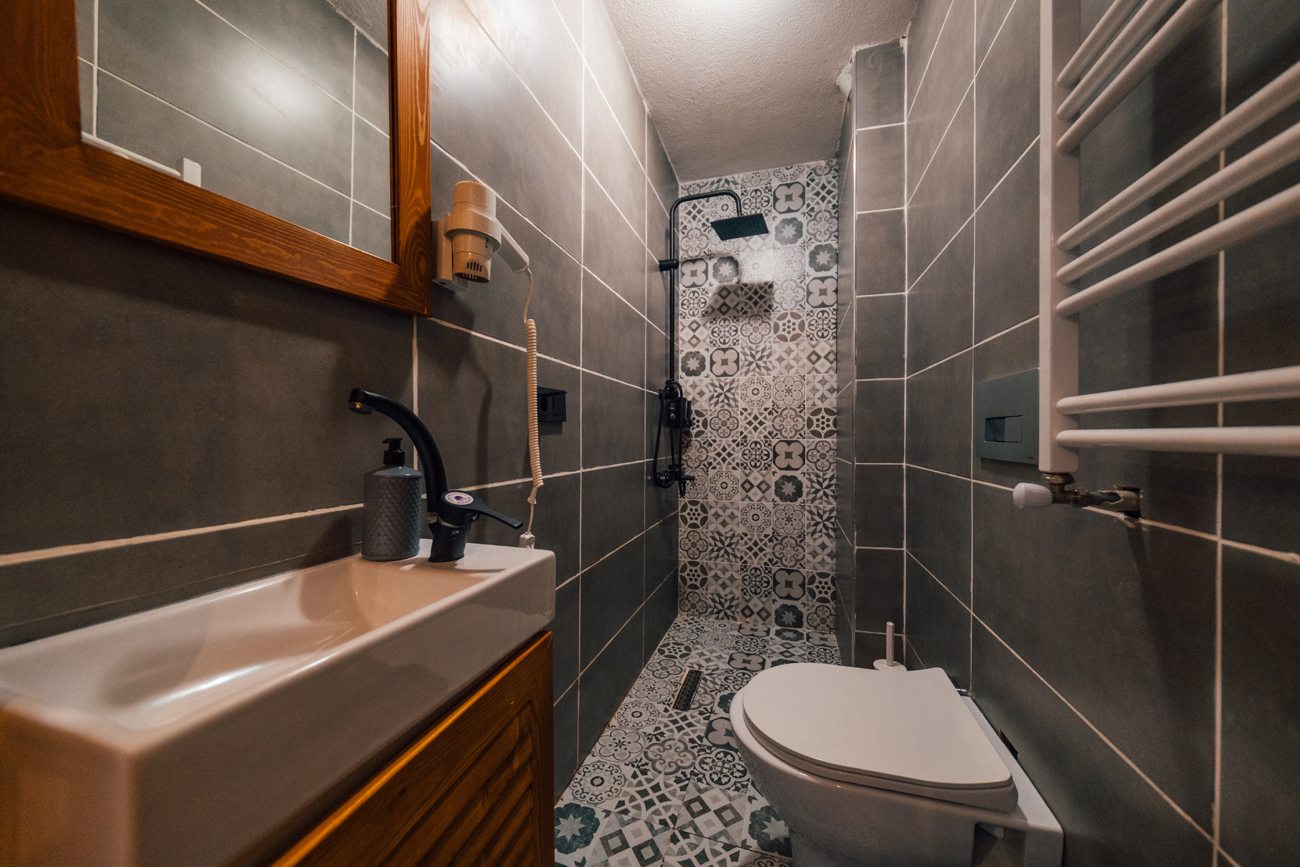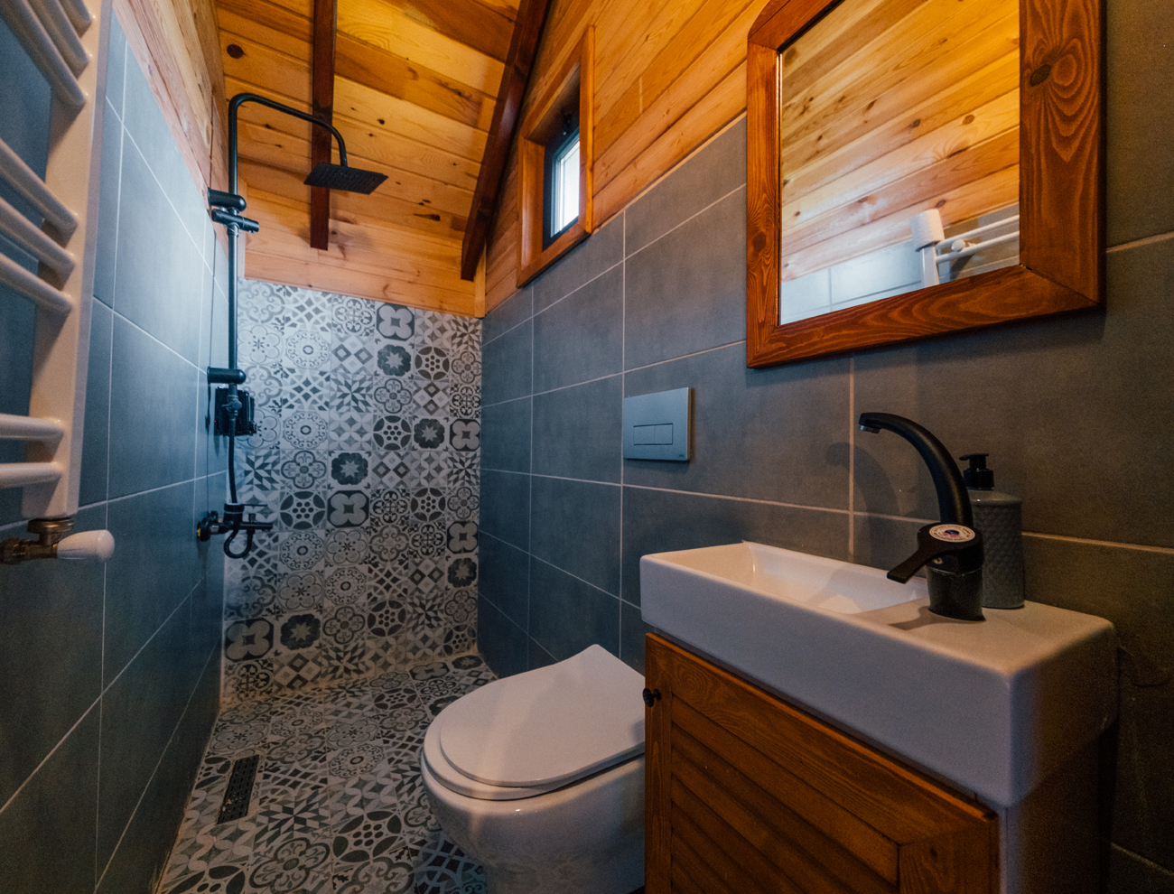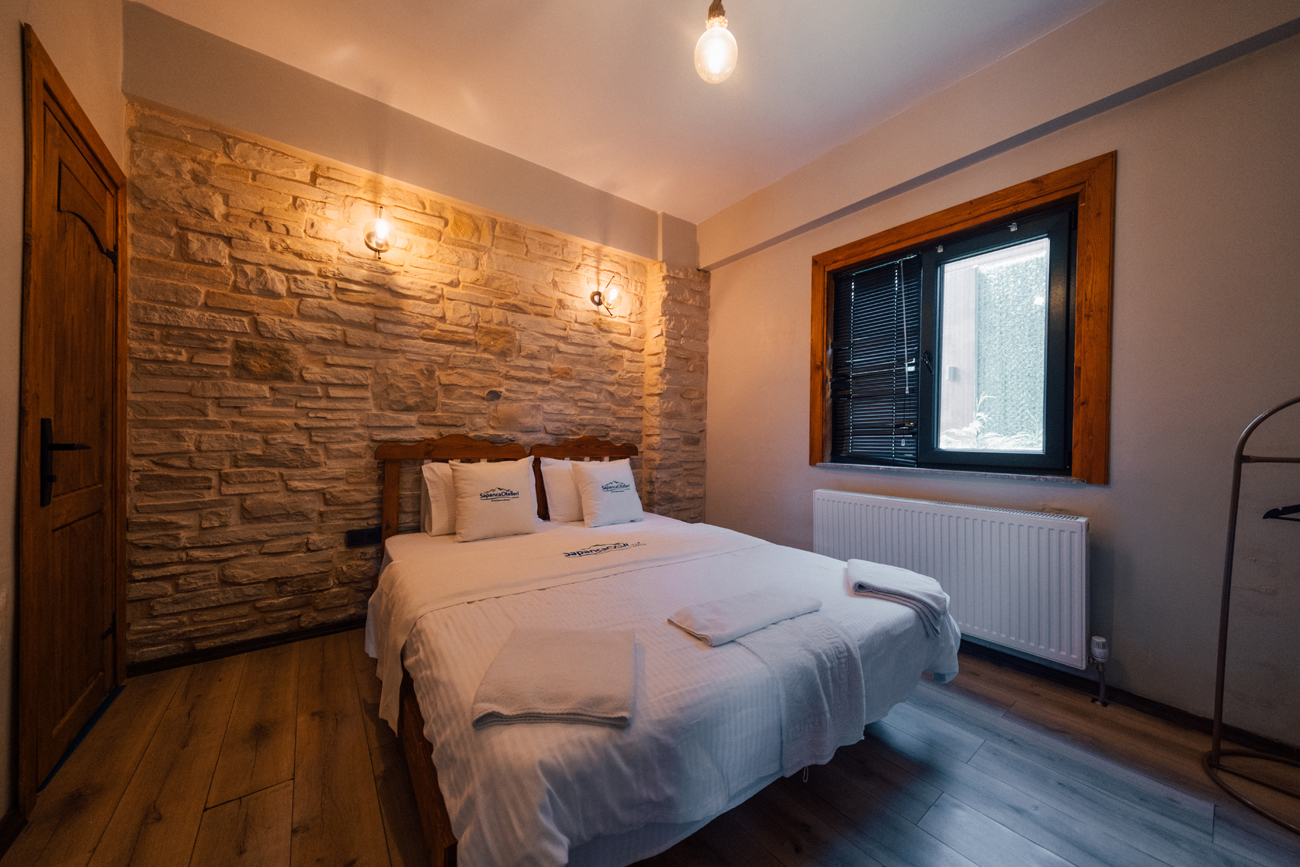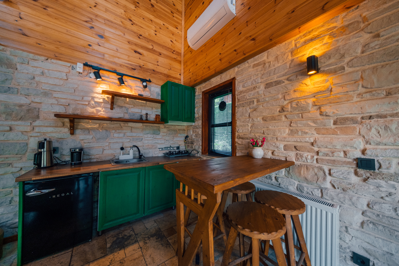 Salon: Açılır kanepe, şömine, yemek masası, TV, klima, Wifi, Wc & Banyo bulunmaktadır.