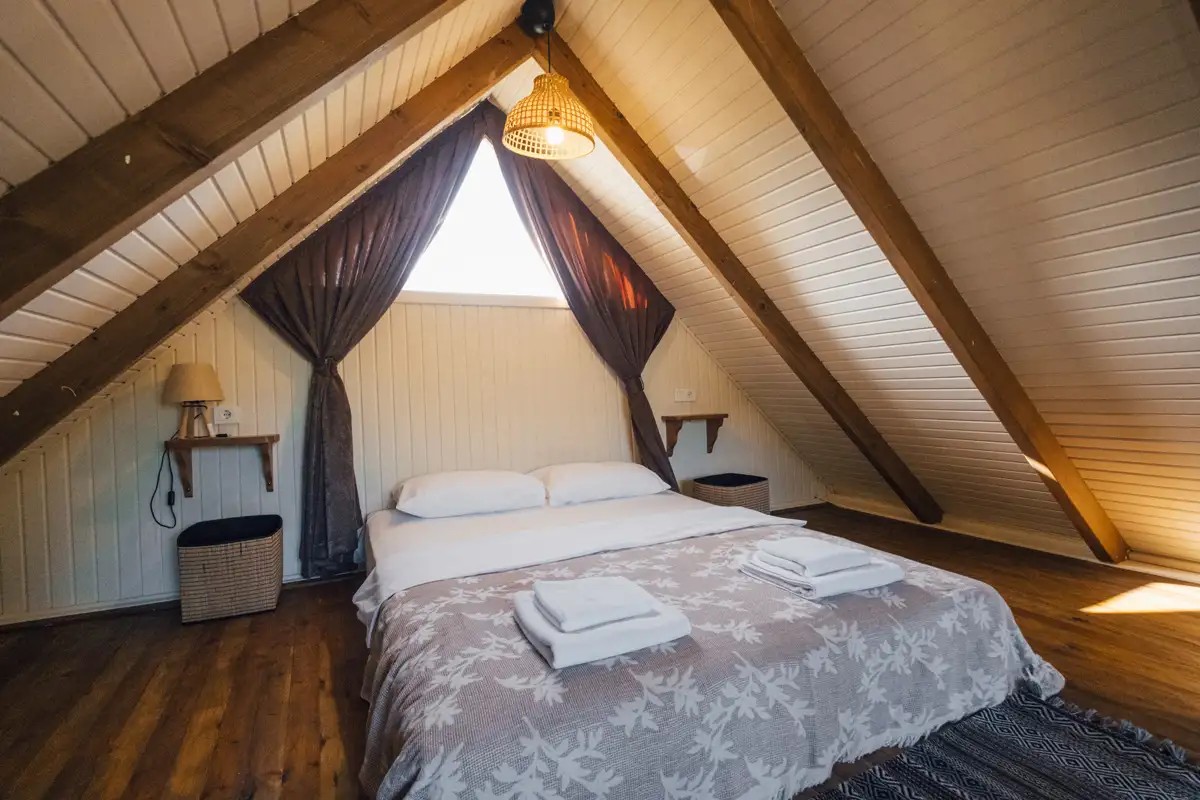 1.Yatak Odası (Asma kat): Çift kişilik yatak, elbise askısı, klima bulunmaktadır.