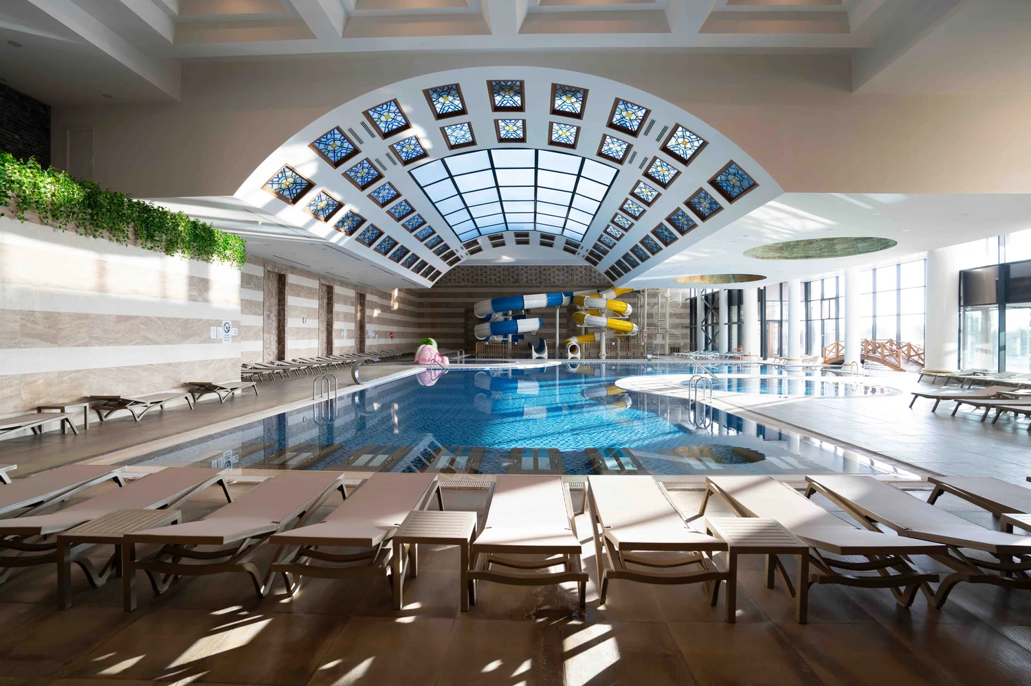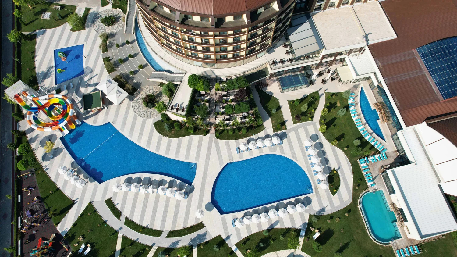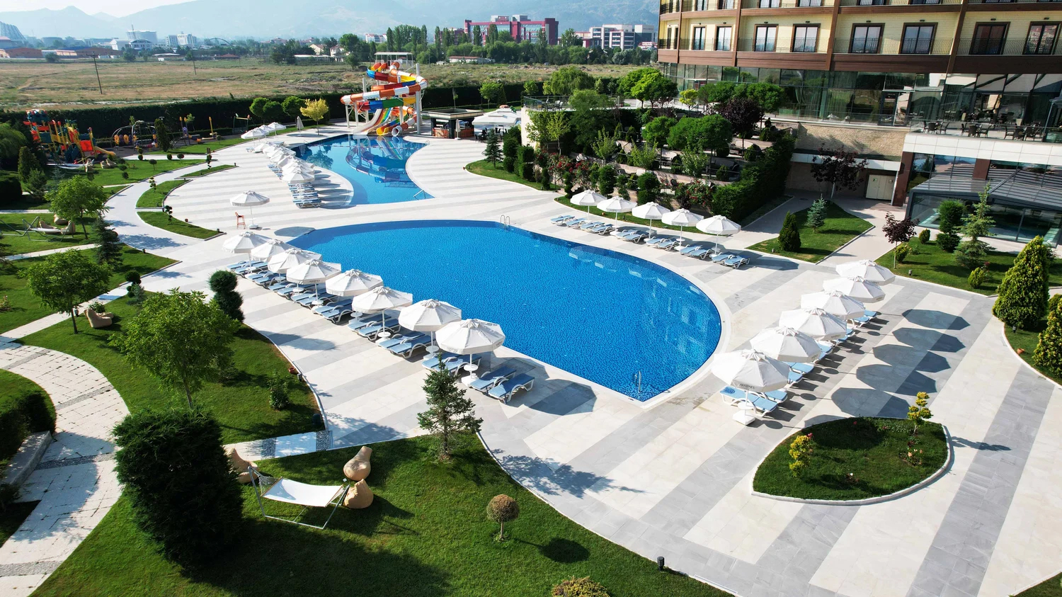 Tesiste yer alan kadın ve erkek misafirler için ayrı ayrı hizmet veren özel termal havuzların ve hamamların yanı sıra karma havuzlar ve su kaydırakları misafirleri suyun en eğlenceli haliyle buluşturuyor.