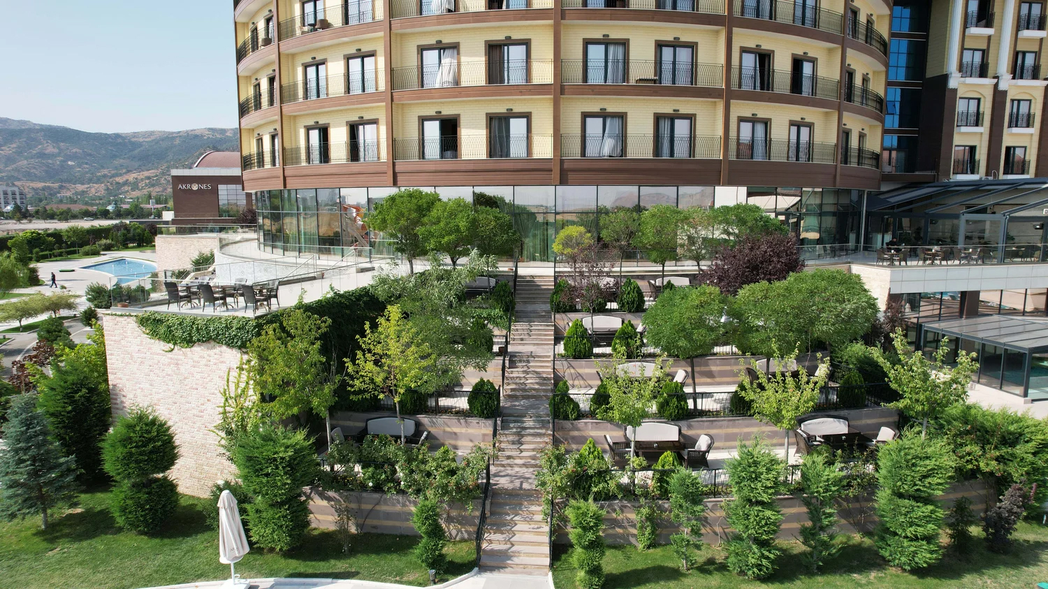 Afyonkarahisar’da lüks ve konforlu bir konaklama deneyimini termal suyun yenileyen etkisiyle buluşturmak isteyenleri ağırlayan Akrones Thermal SPA Convention Sport Hotel, şehir merkezinde misafirlerini ağırlıyor. Modern dokunuşlarla dekore edilen genel alanları ve birbirinden konforlu ve şık odalarıyla öne çıkan Akrones Hotel, misafirlerinin bedenen ve zihnen tazelenip dinlenebilecekleri zengin olanaklara sahip.